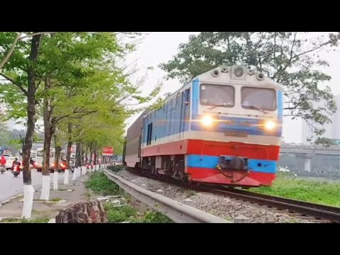 Tàu hỏa chở hàng về ga Giáp Bát qua hồ Linh Đàm...