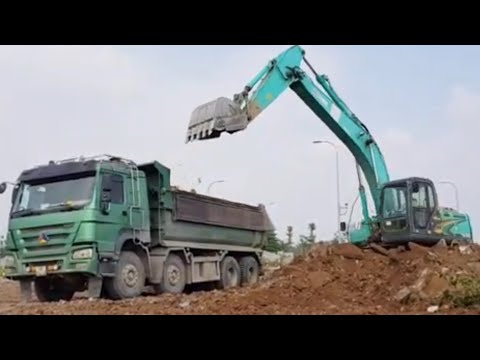 Máy xúc kobelco múc đất lên xe ô tô tải Cảm ơn các bạn đã xem và theo dõi video của BinhNgocHa Tub...